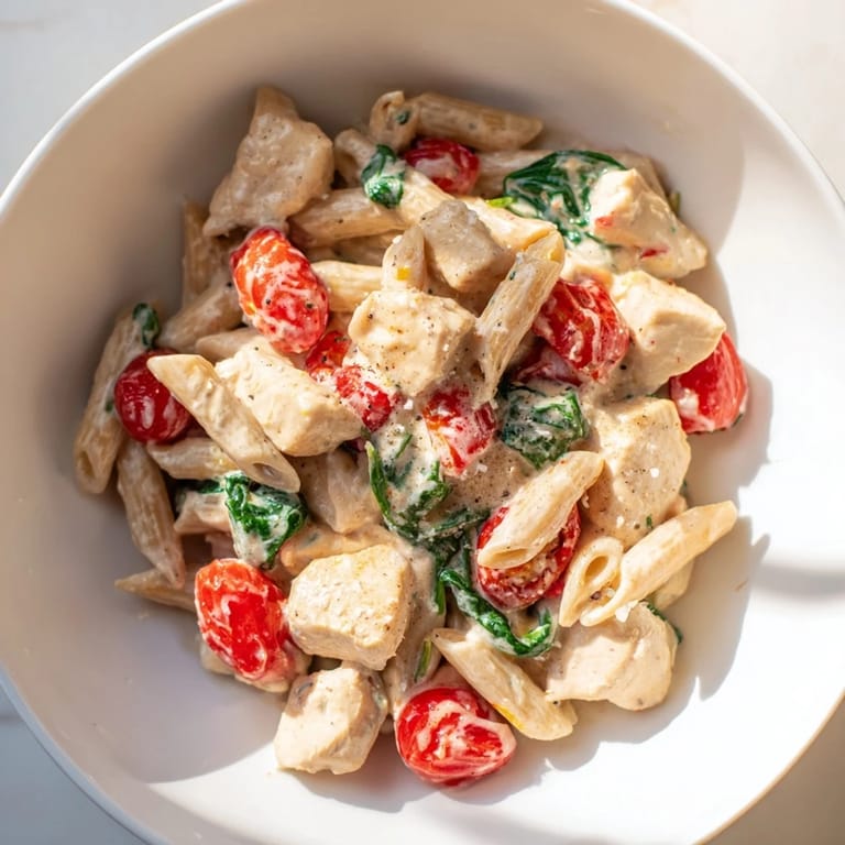 Save My daughter came home from college one weekend complaining that her meal prep was boring and she missed creamy pasta. I had Greek yogurt in the fridge and some chicken thawing, so I decided to experiment. The result was this ridiculously satisfying dish that she now requests every visit. It tastes indulgent but keeps the calorie count reasonable, and I love that it comes together faster than ordering takeout.