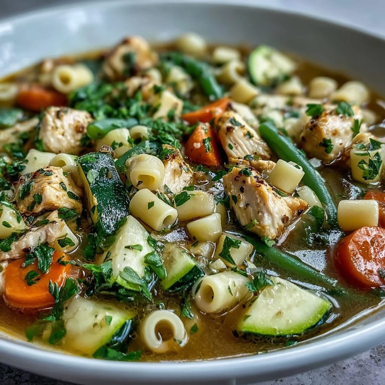 Save The rain was pattering against my kitchen window one chilly autumn day when I first improvised this chicken pasta soup. With a refrigerator full of vegetables threatening to wilt and chicken that needed cooking, necessity became the mother of culinary invention. The steamy windows and fragrant kitchen transformed that dreary afternoon into something magical, and I've been making variations of this comforting bowl ever since.
