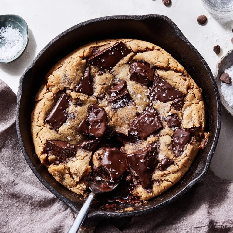 Save I pulled that skillet from the oven on a rainy Tuesday with no plan except to stop craving something warm and sweet. The edges were crisp, the center still wobbly, and the smell of browned butter filled every corner of the kitchen. My roommate wandered in, spoon already in hand, and we ate straight from the pan without a word. That cookie became our unspoken tradition whenever the week felt too long.